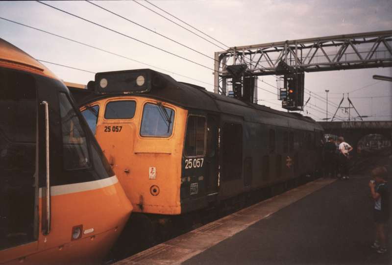 JHs view of 25057 dragging the HST which had failed at Glendon, 150786. The train was caped at Bedford ,,