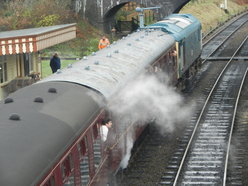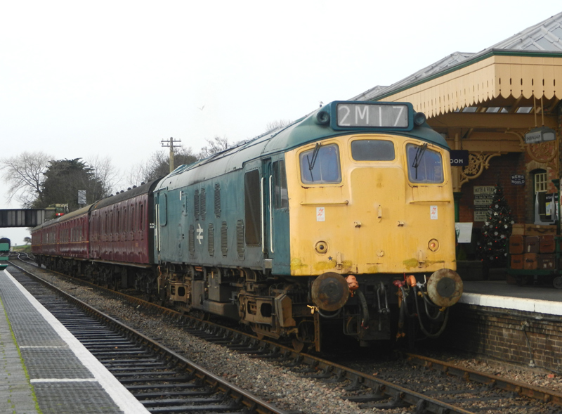 In November 2012 the North Norfolk featured 25057 on 6 return trips on 2 consecutive Saturdays. The rat chattered along nicely, her boiler steamed profusely all day and the 4 coaches in tow were well filled with bashers and a few locals. 25057 started life in preservation locally back in 1988 and by 2012 her largely active preserved career is now about the same as her BR career from 1963-1987. Long may she continue to bring small Sulzer music to Norfolk!