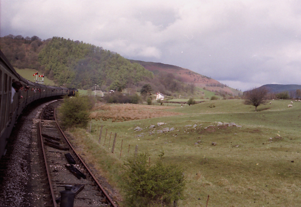 Almost stalling completely just below Talerddig due to ‘078s sanders not working, speed had dropped enough that it was possible to sand by hand – luckily the train was double-manned, so the secondman (…me!) could step off and walk alongside sanding until 25078 regained its composure, (…getting back on board before speed increased too much) and made it over the summit.