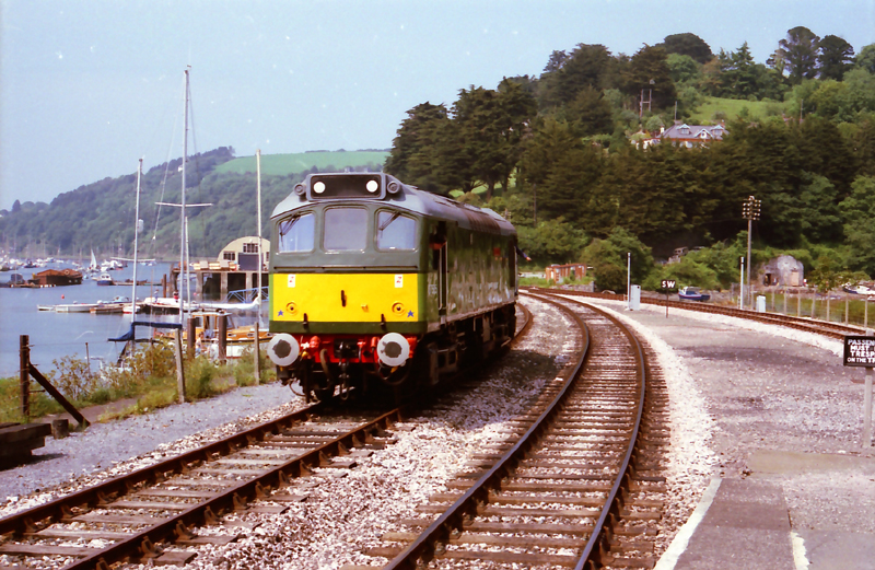 It wasn’t until Saturday June 11th 1988, a Network Day allowed me to get 25185 in the book for haulage. After a longish trip on the “Mule” i arrived at the booking office to have some women ahead of me making a serious complaint that it was a diesel not kettle out. I seriously think she thought you could just fire up a kettle in 5 minutes, not 5 hours. At this time the Paignton and Dartmouth were using their 25 on all Saturday turns. As this was holiday changeover day there were fewer punters on the trains anyway. Perhaps due to complaints like the one experienced firsthand regular class 25 turns on Saturdays ceased after the Summer of 88