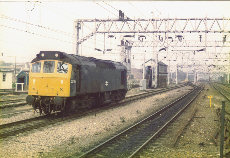 25185 was then stored at Toton apprentice training loco. Painted up and did a few test runs to Westhouses whilst stored…(on two traction motors only). Rumour has it that en route to Paignton . 25185 stopped at Cricklewood prior to entering preservation, 25185 got some favourable treatment with 2 traction motors changed amongst other niceties. Apparently on high level management querying this, the paper work had mysteriously disappeared! 25185 continued to Paignton under her own power arriving on 150386 working 2 round passenger trips soon after delivery