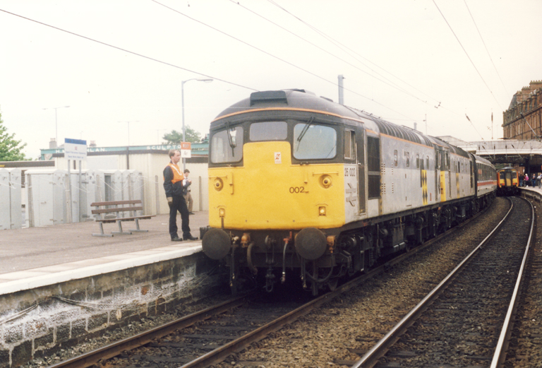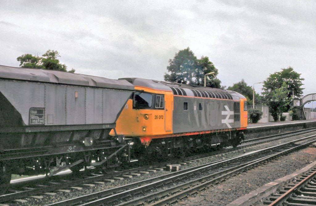 Under sectorisation 26002 became a coal sector loco and finally a civil engineer’s machine. She was transfered away from her Haymarket home becoming an Eastfield machine in May 88 although often still outbased at Millerhill, and in later years Ayr for long periods. 26002 was involved in a collision with PW stock in Barrasie yard in October 91 and many thought this would see her withdrawn.