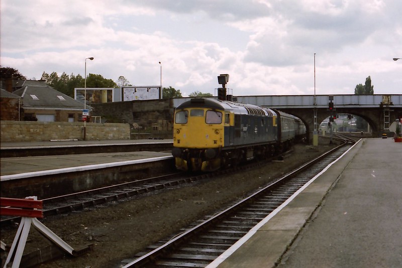 26028 arrives at Perth, with 1L35 1123 Edinburgh – Perth earlier on August 22nd 1986