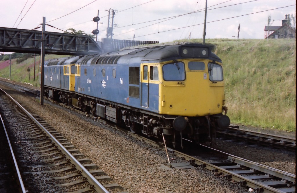 27059 first emerged new as D5410 in September 62 as a Cricklewood based machine working freight, parcels, ECS and some passenger turns on the Midland Main line and cross London lines. Transfer North to Scotland as more class 25’s arrived in London came in February 69. The loco was Eastfield based for 2 years which would have seen her work passenger and freight over much of Scotland, especially the West Highland lines. 5410 was to become a Push pull and eh fitted “tippie” (one of 24 27’s push pull fitted) which saw her largely restricted to the Edinburgh-Glasgow push pull duties building up large high speed mileages between the two cities. As 27123 then 27205 her last push pull turns were reported in early 1980 and then effectively “nb” (very little eth stock in Scotland then) and dual braked she became a grubby freight machine working long stints on coal duties out of Ayr in particular (being renumbered 27059 in June 82). She became a highly sought after machine for haulage and many a long leap by some was made by a few to sample her on a rare class 1 turn. In her last years she featured on the Kirkaldy’s, S06 pilot, the circuit and even a Farrow tour.