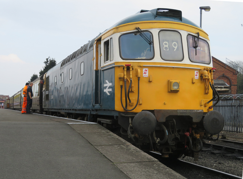 White cab fitted 33108 coupling up at Kidderminster prior to working the 1345 to Bridgnorth on 210418
