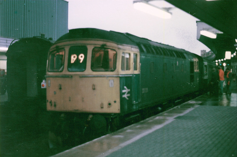 8 months earlier, 33201 at Temple Meads with the 1610 Bristol – Brighton on December 13th 1985
