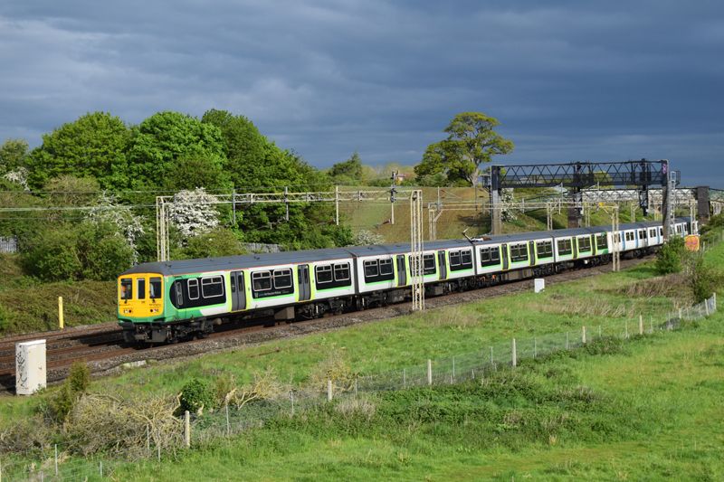 May 17th 2021 saw 2 x 12 car diagrams reinstated locally, here 319214, 319216 and 319429 scream past Ledburn with May 17th’s inagural 2B24 0753 Bletchley – Euston 12 car 2021 formation