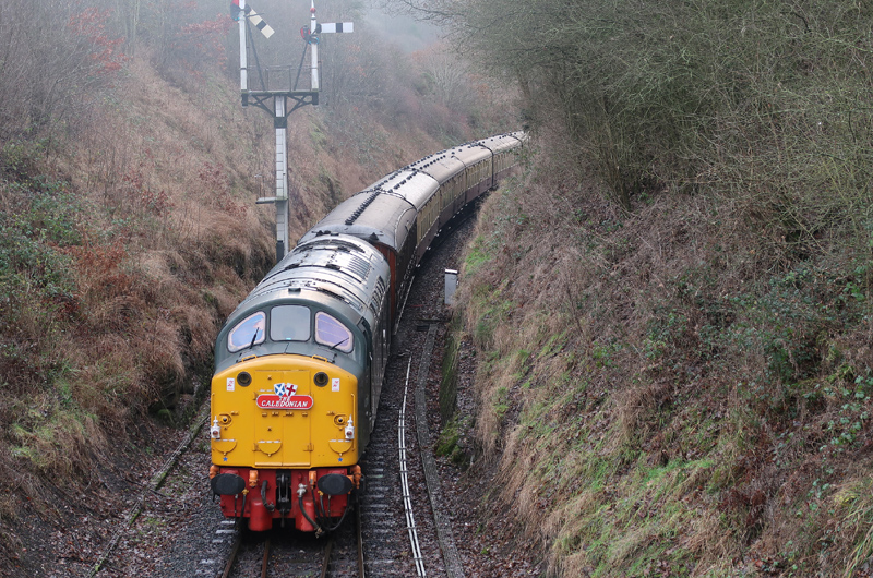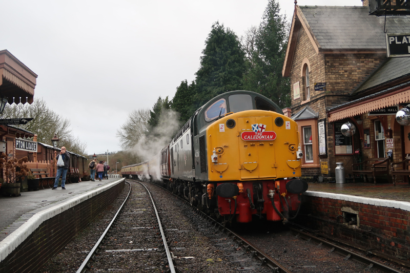 40106 could be heard in the still Valley air some minutes before whistling into Arley with the 1115 Kidderminster – Bridgnorth with 6 Mk I’s and Gresley coach 2701 in tow on December 30th 2022