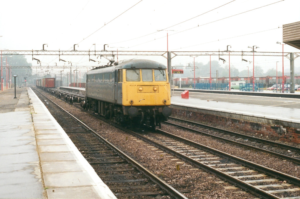 One of the very last mainline “roarer” workings is captured at Northampton on July 6th 1991. 85109 (the former 85035) is working a delayed liners from Glasgow to Willesden and all class 85 main line operation ceased the following day. A huge loss to the character of the WCML