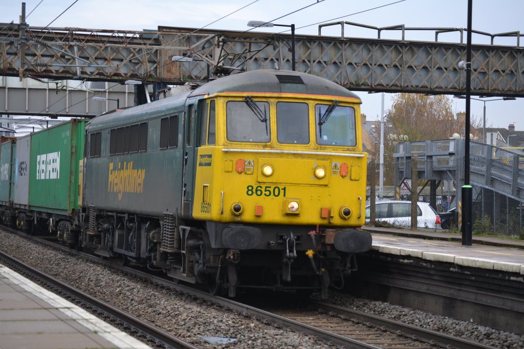 Single class 81-86 were booked power for 4L89 South of Crewe for much of the 90s and early 2000’s. 86501 as a regeared “super can” could do the work of a pair singly. Here 86501 passes Leighton station with 4L89 on November 29th 2014