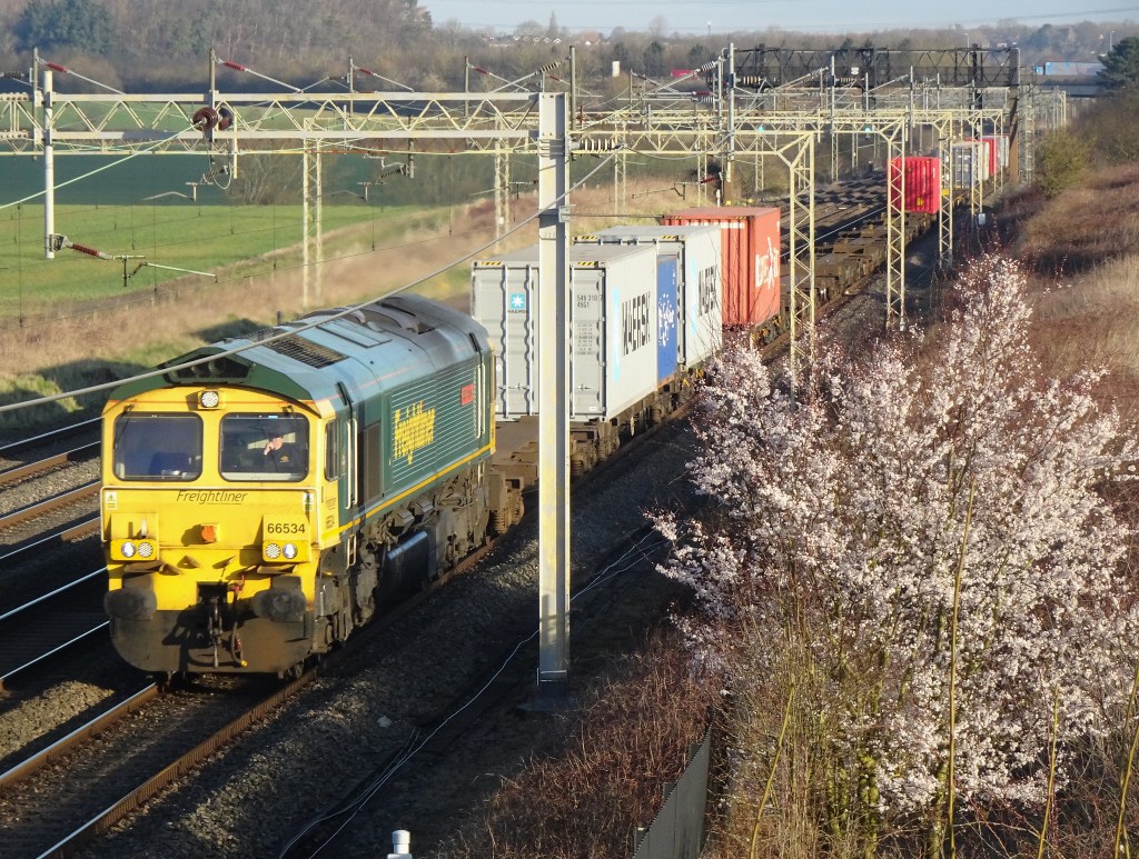 4L89 has spells of “shed” power which are usually thankfully short lived here 66534 passes the Spring blossom at Ledburn on March 10th 2022