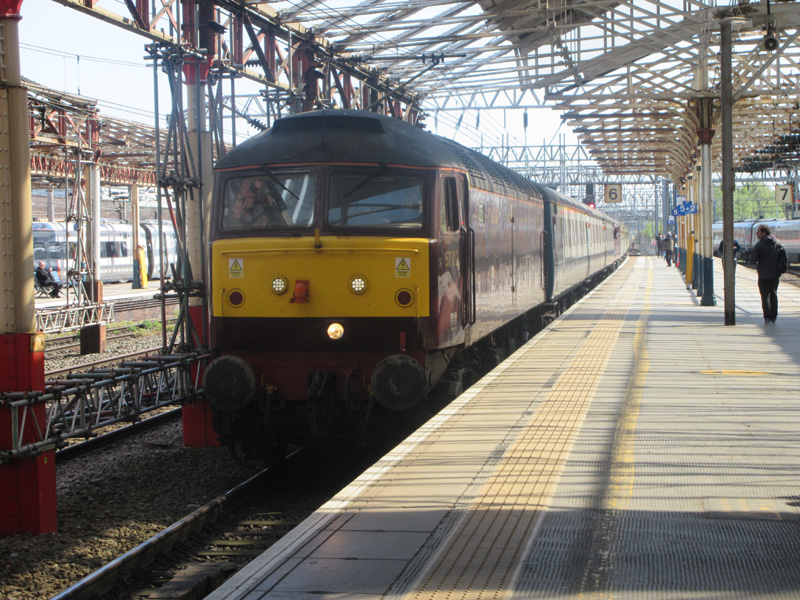 57012 arrives at Crewe with 5M43 Southall – Carnforth