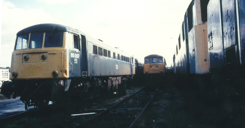 Not showing much sign of decay after 14 months in open store, 85037 with doomed class mates at Crewe ED in Nov 91, thanks to Steve Chapman for the phot