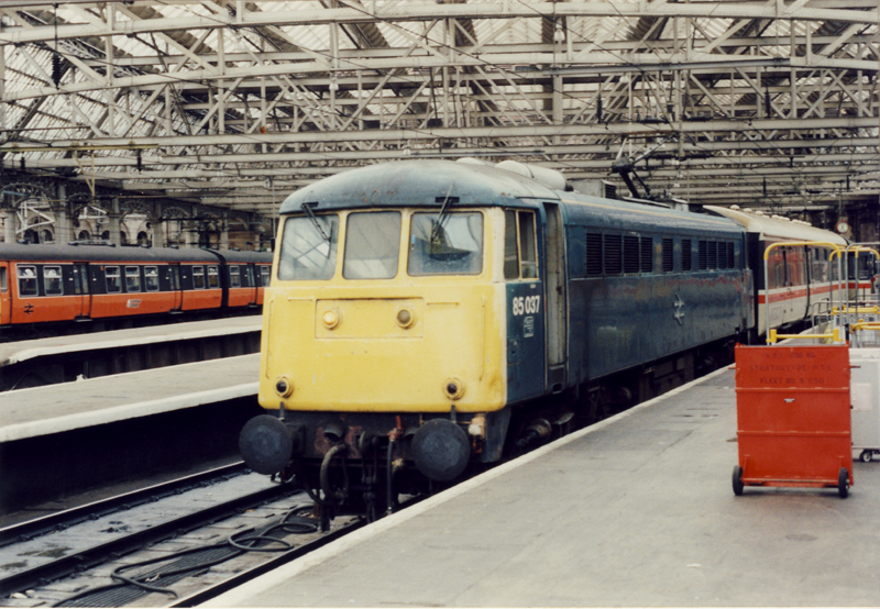 85037 at Euston prior to departure with a Euston – Aberystwyth LNER charter on April 30th 1983