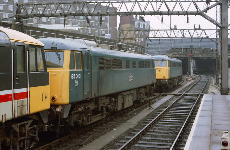 Having worked in on the Abbo-Euston, oil streaked 85013, also 85030 awaits her next turn on Euston A sidings