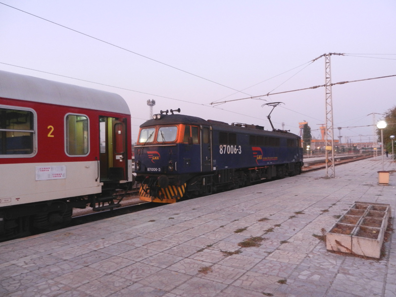Fond farewells, 87006 rests with those distinctive “seven” idling whines at Sofia after 600 kms of “proper electric” haulage on October 7th 2011