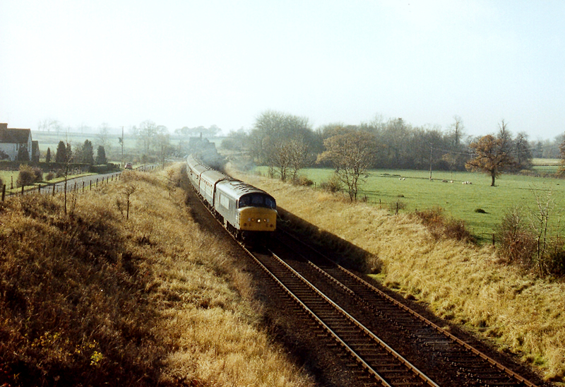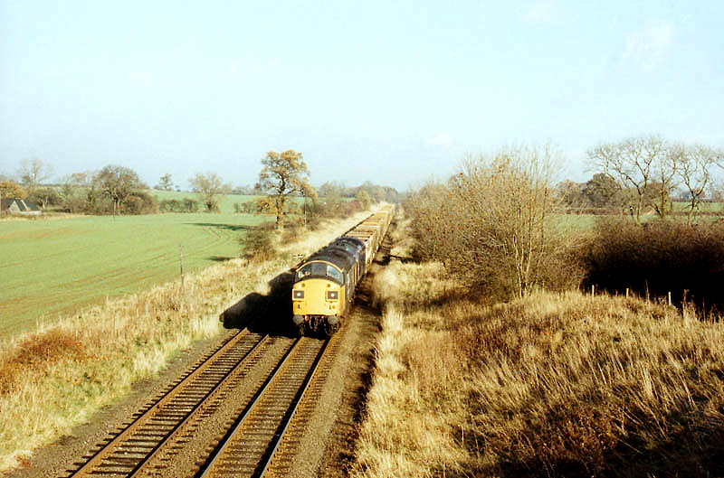 Locals walking or driving passed took the trouble to stop for a chat and several remarked that the stone had “gone down in the morning”. Now it rarely returned West before 10am, so it possibly was waiting on the flyover at Bletchley, for the tour to pass as the line was now single Claydon-BY. (Rich Stiles was to confirm the 37’s were waiting some 25 years later!!). Anyway more in hope than anything back then I waited, and half an hour or so after the peak had passed came