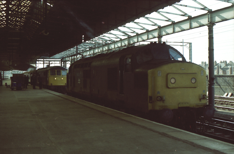 37278 about to back onto 86217 on 1F90 0700 Euston – Liverpool Garden Festival Relief at Rugby on July 1st 1984