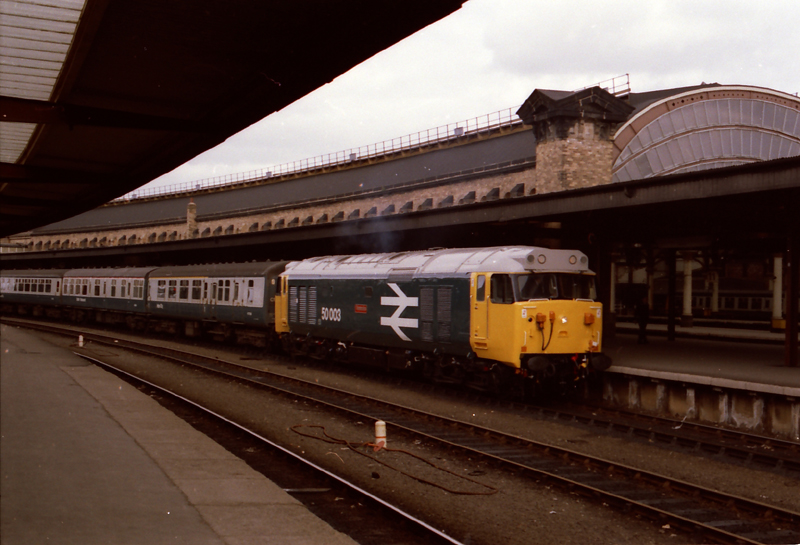 Ex works 50003 at York with 1V92 1428 York-Plymouth, 110484