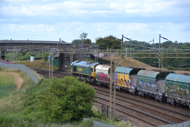 The inevitable shed in 66617 heads North with 6H50 Wembley – Tunstead stone empties