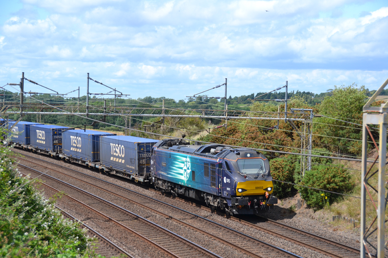 88002 looking good approach bridge 139 at Old Linslade with 4L48 1337 Daventry – Tilbury “Tesco train”.