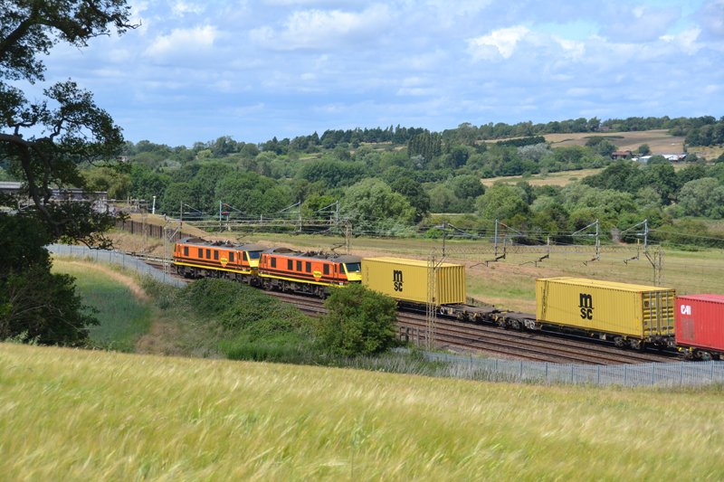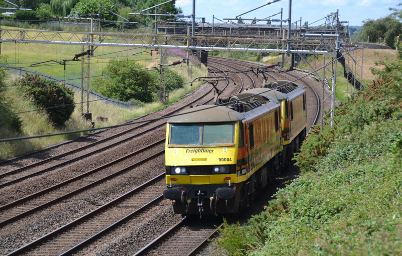 90004 and 90015 on an unusual up light move from Crewe to Wembley from where the pair would assist 66601 on cement empties