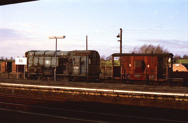 A work weary 08100 stabled at Ely, this 08 survived until being cut at Doncaster Works in Aug 85