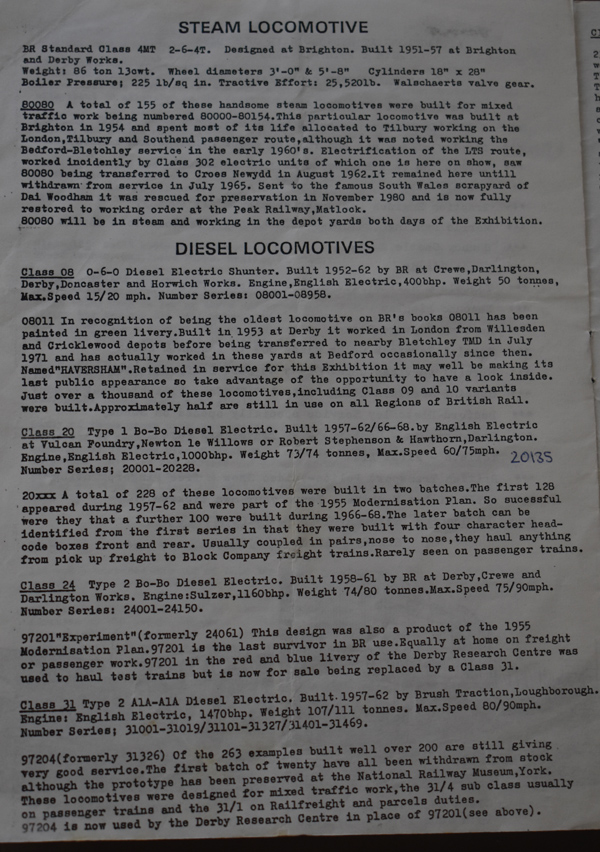 08011, 20135, 24061(RTC), 31222, 31247, 31257, 31284, 31326(RTC), 33206, 46035 (RTC), 47309, 55015, 55022, 56091, 58027 and kettle 80080.