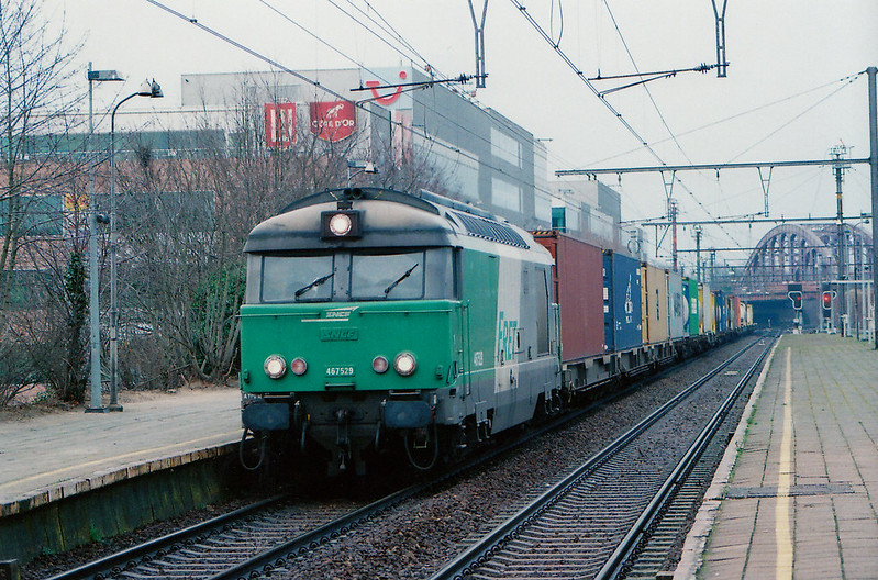 SNCF Fret 467529 with a westbound container train at Mechelen, 25.01.2012.