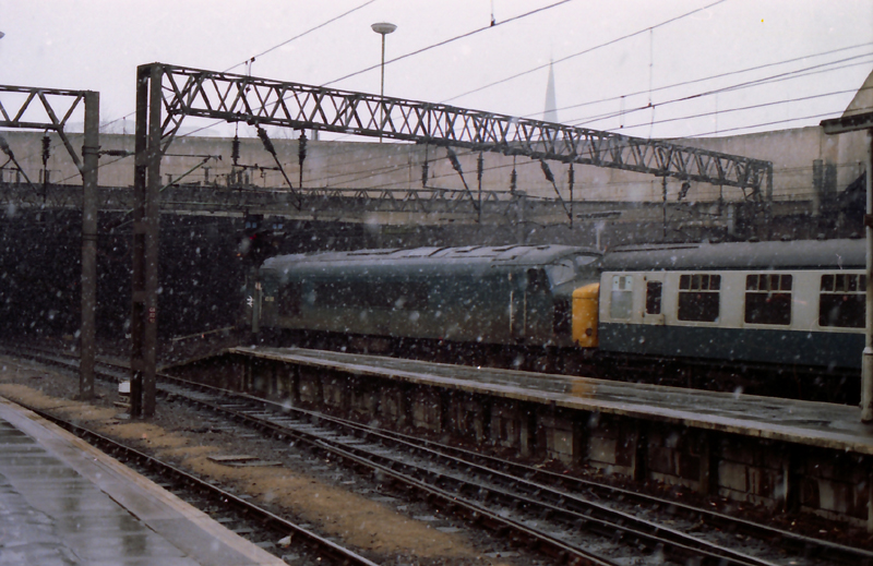 The late Tony Ewer catches the train crew of 46027 leaving their mighty charge on an inter regional at New St on April 8th 1982
