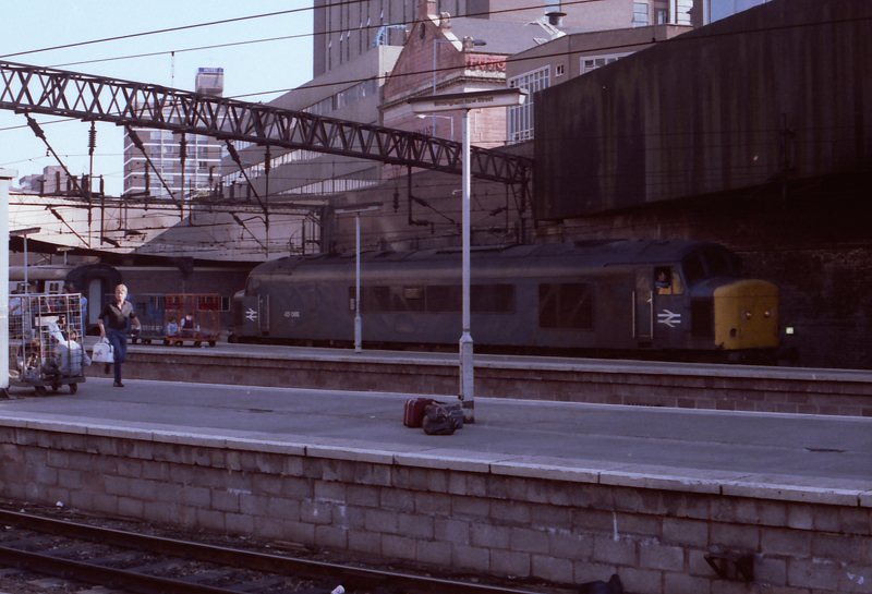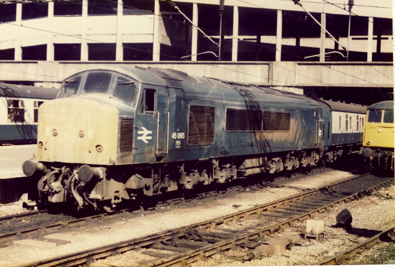A work stained 45065 at New St having arrived with 1M76 0855 Newquay – Manchester on July 28th 1984