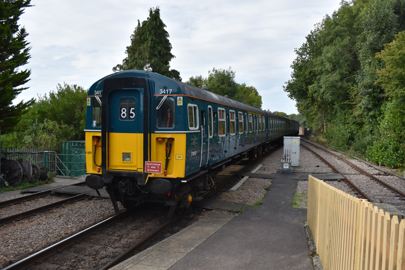 Propelled by 33108 VEP 3417 (formerly 7717) arrives at East Grinstead with the 0920 ex Sheffield Park. This unit is in superb condition inside and out,
