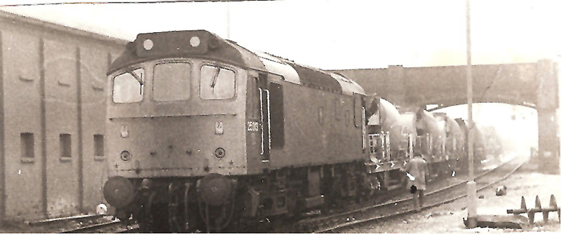 More MIB nostalgia with 25313 shunting an electrification train at Bedford on February 7th 1979