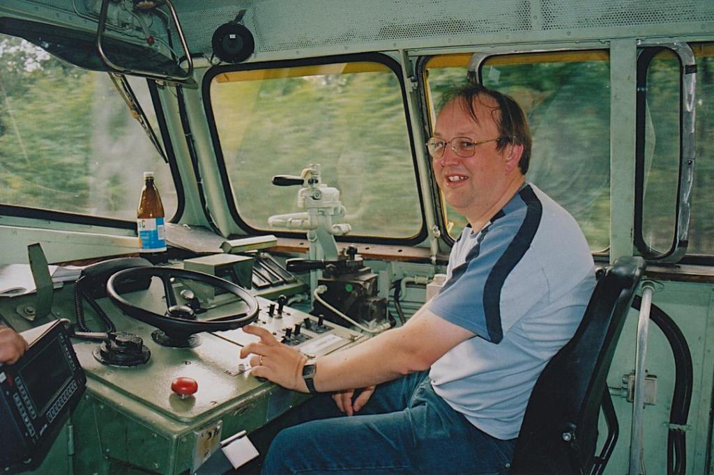 Our friend was showing us the basic controls for the locomotive, the power handle was a huge circular wheel, turn it one way to apply power, turning the other way shut the power off. There was a button you had to press each time you passed a signal. The signalling system is completely different to the UK system, which virtually every line reversable. Phil got the basic idea, but I didn’t. Once we were clear of Hanau, and under close guidance we both had a go at driving our 80 tonne loco.