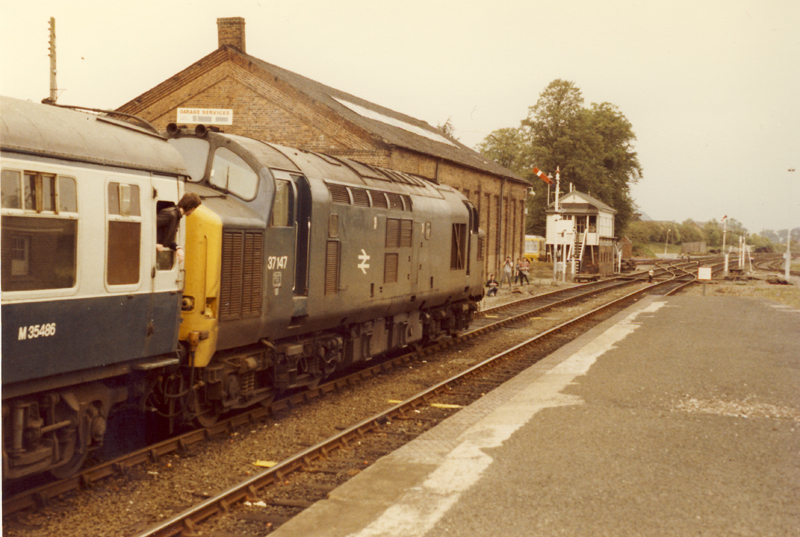 The plan was bail at Caersws, which we did……..seemingly along with every other basher on the train. 12.30 37147 (LE) rolled in with 1A50 11.10 Aberystwyth- Euston consisting BSK 35486, SK 18765,18857,18984, CK 7193, SK 18822,18808,18771 and BSK 35341. CS – Welshpool. Both the BSK’s are still around….35486 became support coach for A4 60009. Four of the compos are in preservation and the FK lives on with West Coast.