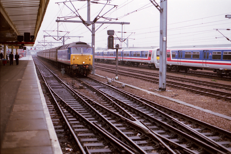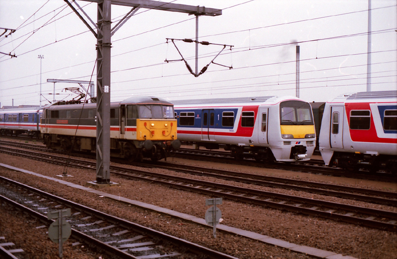 The wide marklites show yummy “cans” on 1B06 and 1B07 commuter whilst an unidentified 90 waits with a down Manchester at Euston on 091288