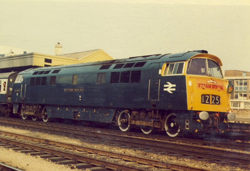 Thanks to John Williams for this April 6th 1974 view of 1023 Western Fusilier at Cardiff General with a steam special