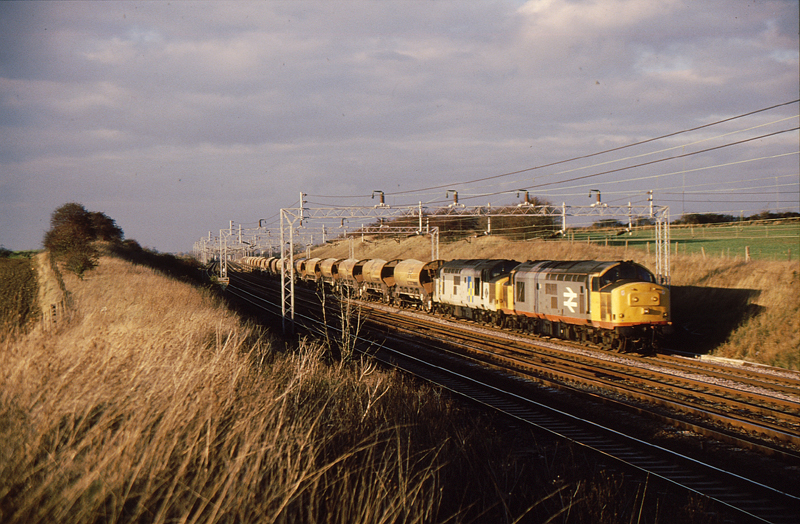 The main event! 37685 and 37687 growl South with the Peak Forest – Bletchley stone