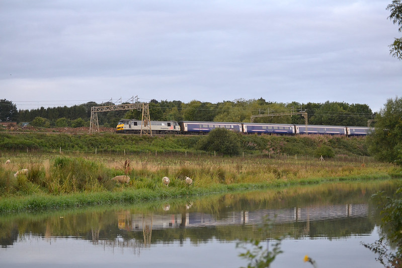 Still in Freightliner grey 90043 is ignored by the local sheep heading South with 1M16 on September 3rd 2015, at this times Freightliner 90s were regular hire ins on the sleepers