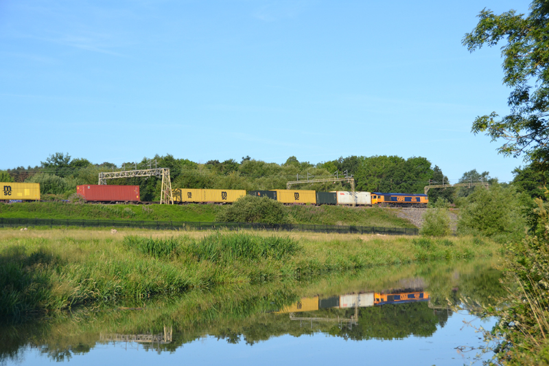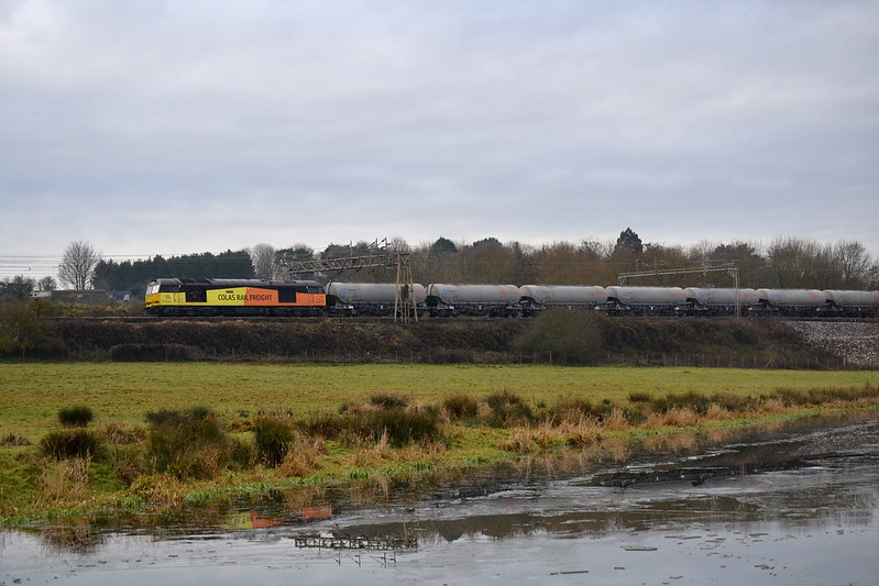 With the canal still iced up 60076 passes Chelmscote with 6L44 Oxwellmains – West Thurrock cements on December 19th 2017. Diversion of this service on Tuesday and Thurs mornings is expected to continue until the Barking-Gospel oak electrification blockade is lifted in the third week of January 2018