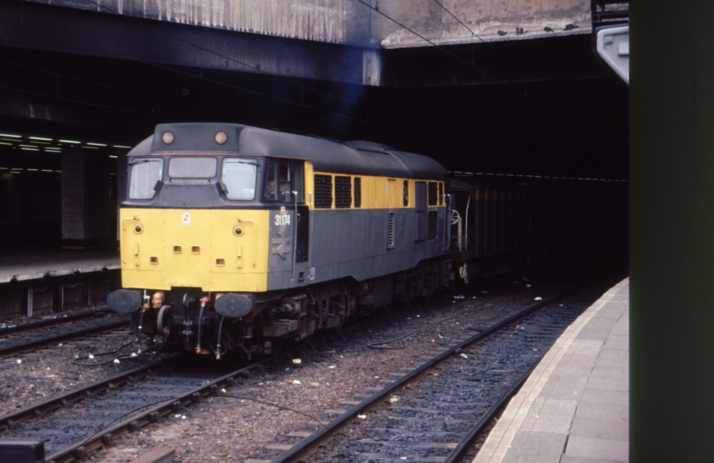 31314 at New St with the 12 coach 0920 Glasgow/Edinburgh – Padd which the 31 worked forward from New St on July 3rd 1983
