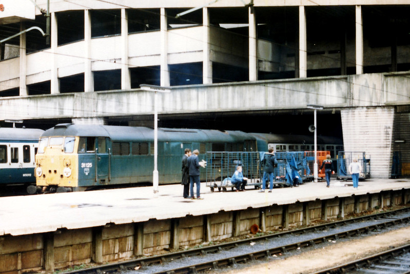 Bashers and BRUTES at New St, 31125 rests after working the 0903 Cambridge – Birmingham NS on March 19th 1983