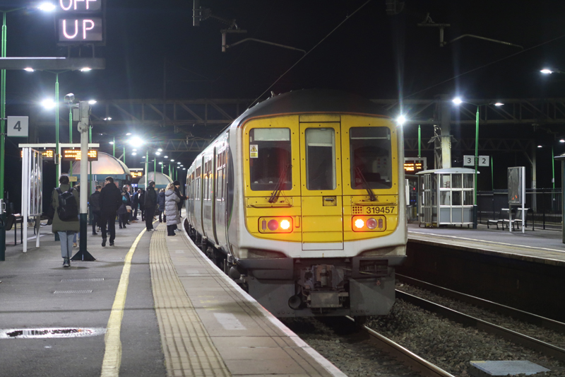 Still solo 319457 arrives at Tring with the 1624 ex Euston and will return with the 1714 Euston on November 23rd 2023