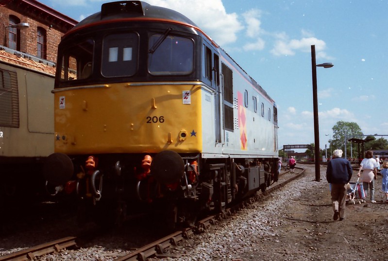 33206 was specially requested for Bedford Open day because of her rarity value. The big “slim” is seen on display in the goods yard at Bedford Open Day on May 28th 1988