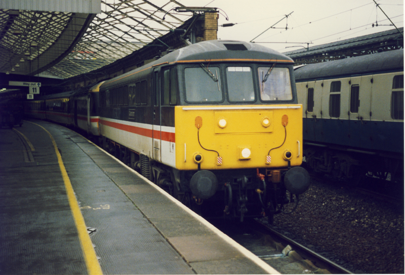 86225 unusually dragging a failed HST at Crewe on the 1117 Bournemouth – Glasgow on February 16th 1993