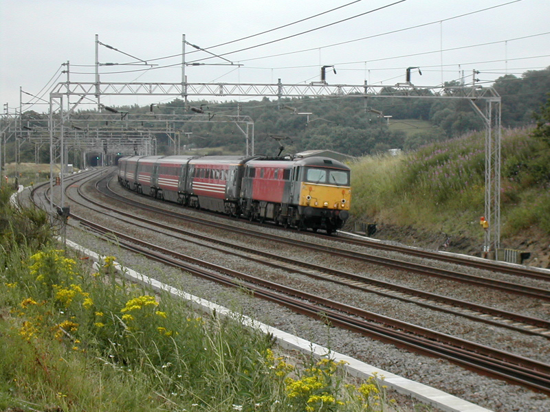 “Red Cow” catches debranded 87027 the legendary “Wolf of Badenoch” passing Old Linslade with the 1500 Euston – Manchester on July 15th 2004. ” 2 weeks later the legend was laid to rest…