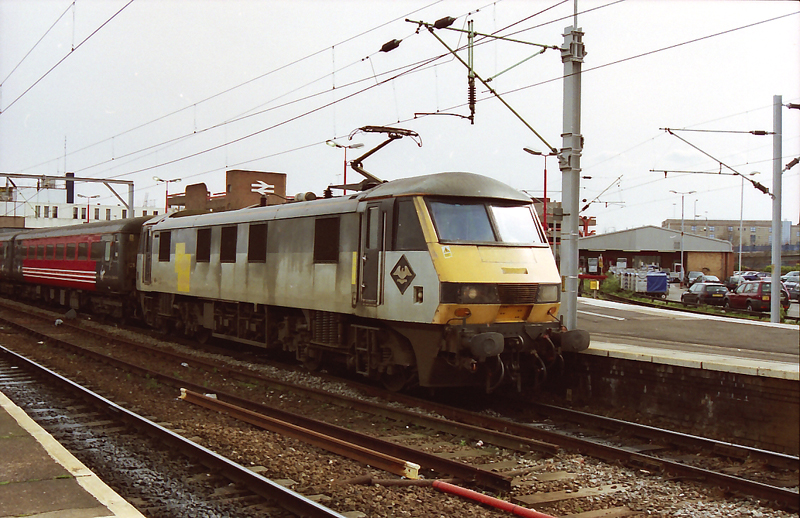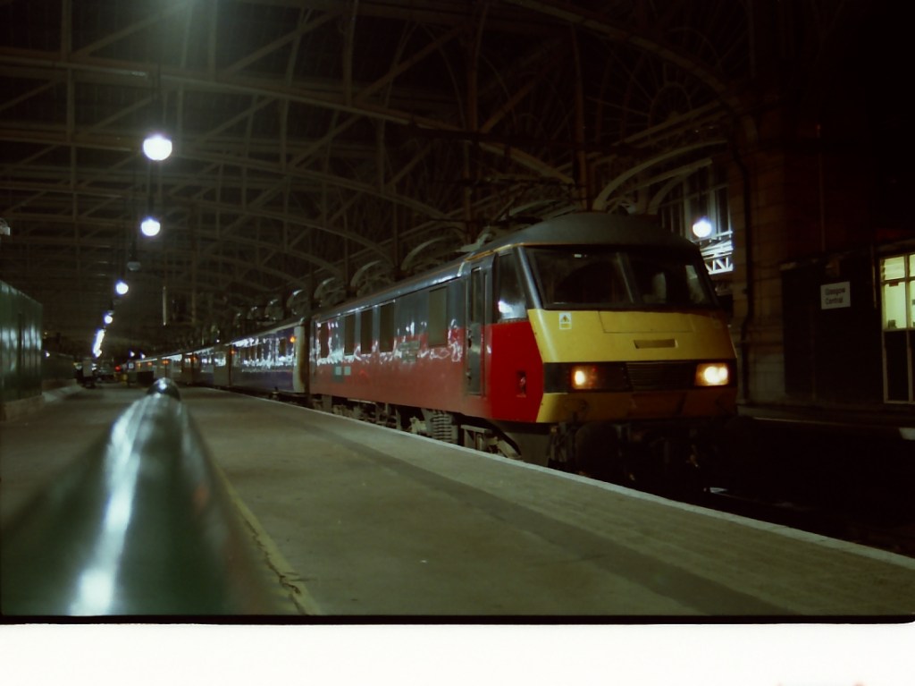 90017 at Glasgow Central prior to working 1M11 2340 sleeper to Euston on October 10th 2001. The RES 90’s were first outshopped in Inter City livery not getting their superb red liveries until a few years later
