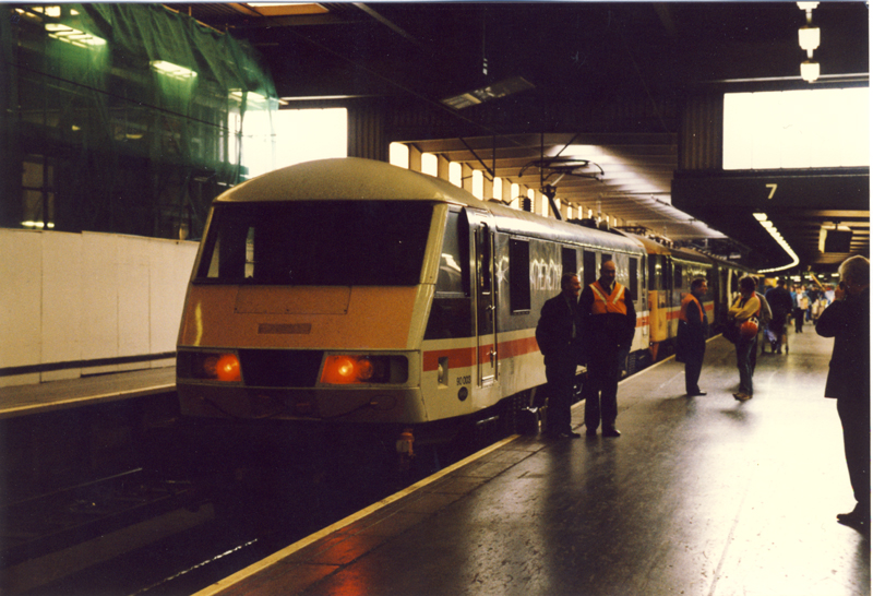 My first 90 raked in was 90003 back on July 12th 1988 when i was on an “All line” chasing roarers. Big Dave had the gen that the 90 with 86413 tucked inside dead as insurance should work the 1340 Blackpool – Euston forward from Preston. I at first said I ‘d flag it but “its a bit of railway history” my colleagues argued. So i joined them on the 90 at Crewe for a dull run South via BS, being at the very rear of the train we couldnt hear anything and 87101’s derailment meant the Trent Valley was closed.