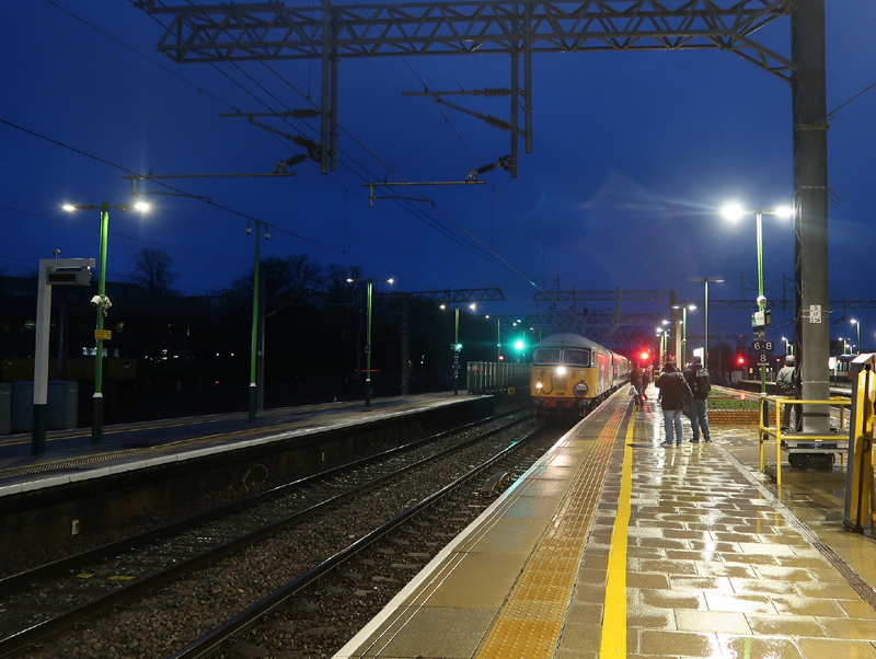56098 arrives at a very wet Watford with the tour around 0740 on January 14th 2023