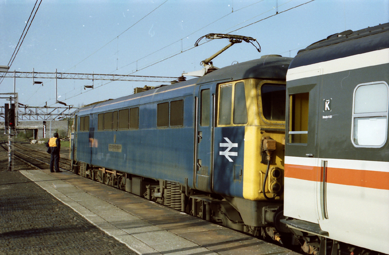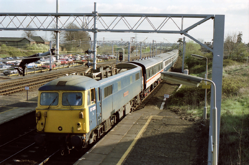 More interesting was 87028 stopped on the down fast at Leighton with a load of Mk III’s with passengers peering out of every door window! Checking with railman Hungarian Jo and local Cobbler man Neil Evans the gen was that this was a major problem in that something had just brought the down fast wires down close to Bletchley PSB. Only a short section had been dewired but the Bletchley South crossover couldn’t now be used.